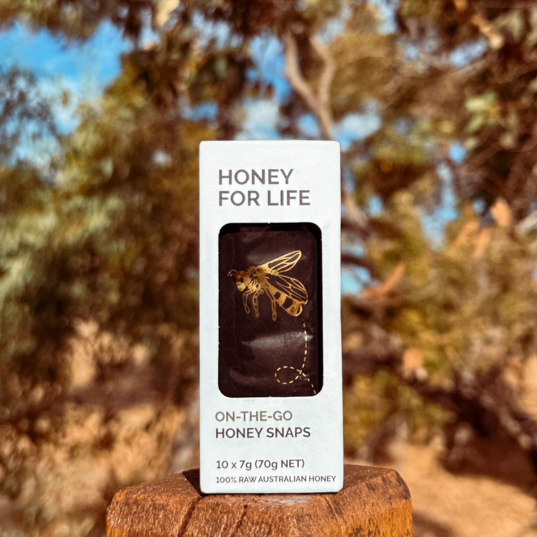 Experience Your Daily Healthy Honey Dose On-The-Go! Our convenient snap packs ensure mess-free enjoyment anytime, anywhere. Boost your immune system with our delicious active eucalypt honey snaps, great for portion control, perfect for drinks, breakfast treats, or a quick energy shot. Ideal for kids' lunch boxes, sports and your favourite sweetener anywhere. Now available in easy to pack boxes of 10 x 7g Snaps.