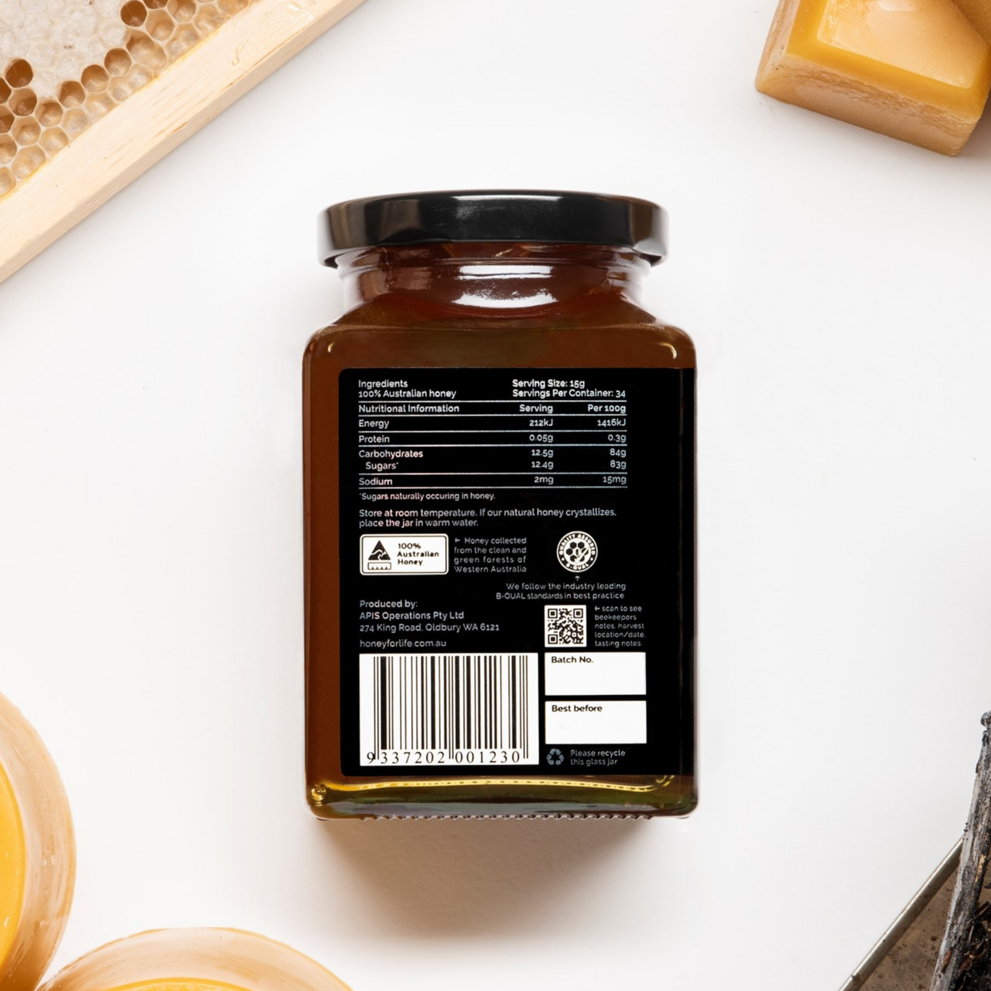 54Our Marri Honey is collected from the rich and ancient Marri forests in Dwellingup, Western Australia. Sometimes referred to as Red Gums due to their deep red sap, the Marri trees yield beautiful cream coloured white and pink blossoms from which our bees source their honey.