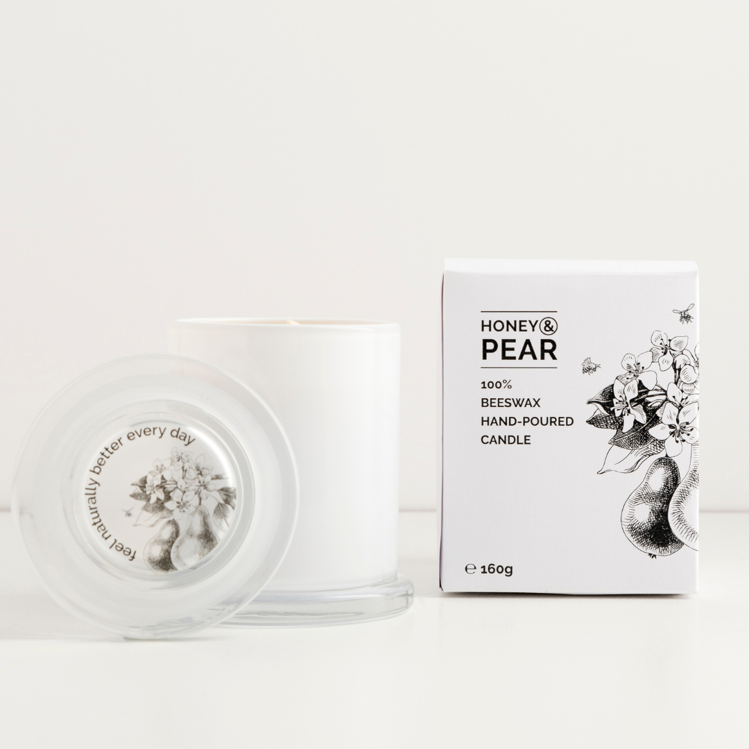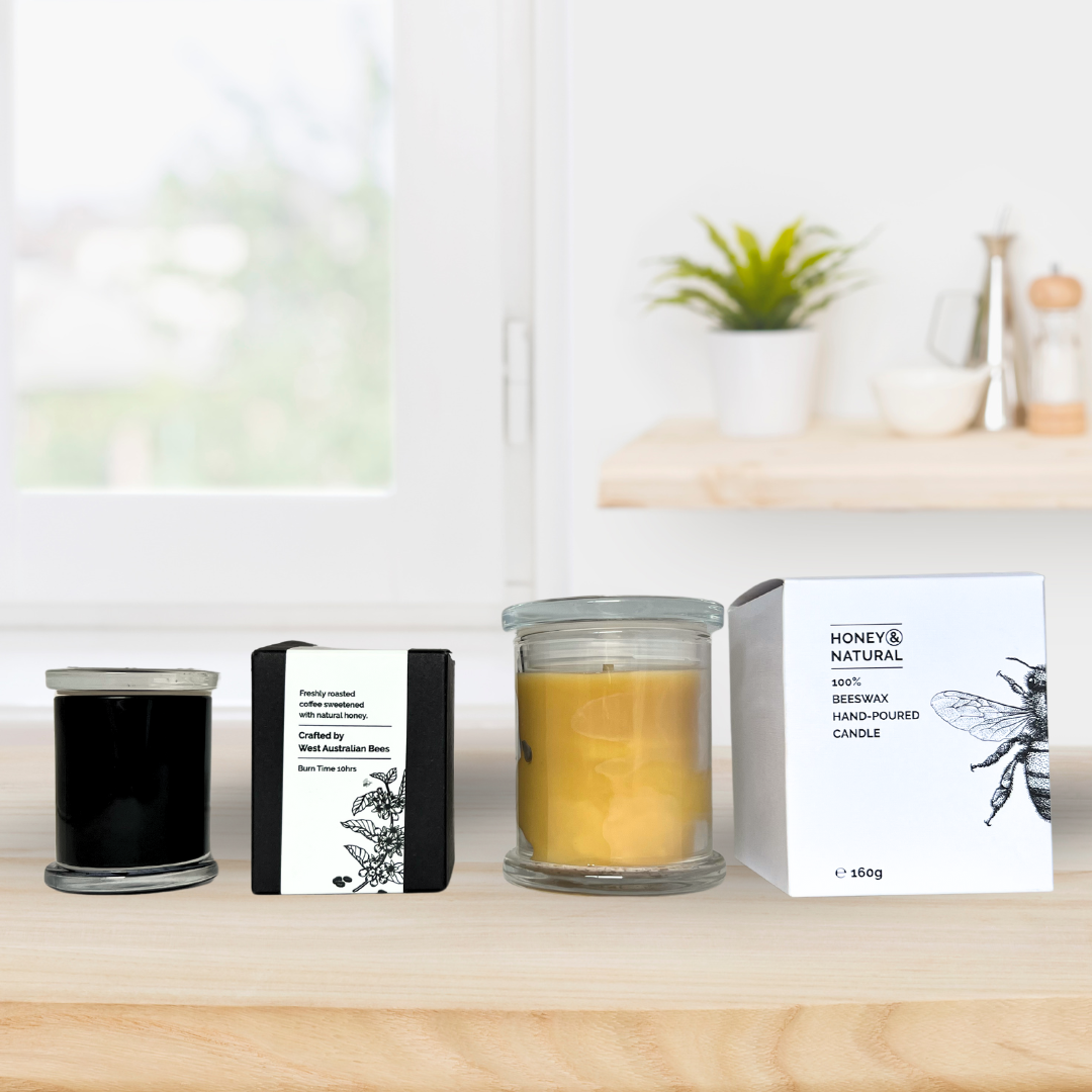 Our scented beeswax candles are hand-crafted using wax made by our happy and healthy bees, and beautifully poured into a premium solid glass jar with matching lid.
