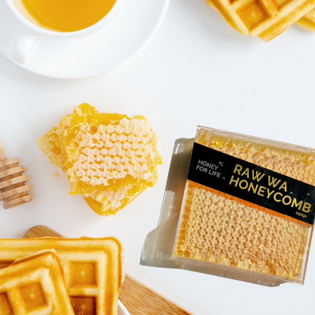 19Our premium Honeycomb is 100% WA, multi-floral, raw honeycomb, collected in the forests of the Darling Scarp, Western Australia... crafted in hive by our healthy Western Australian bees, our honeycomb cassettes are single layer - so there is more honey to wax than usual.